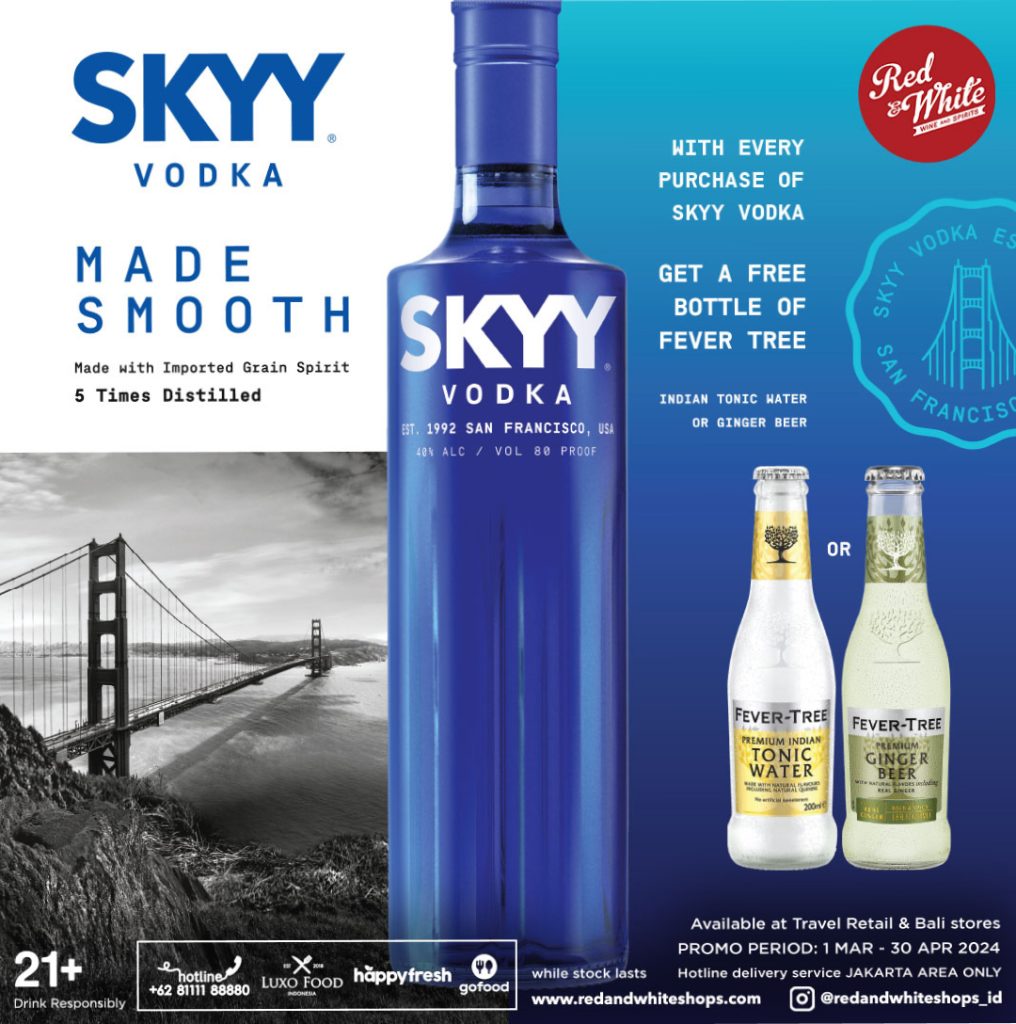Experience the perfect pairing with Red & White Wine! Elevate your spirits and delight your taste buds with our exclusive offer. For a limited time only, enjoy a complimentary bottle of Fever Tree with every purchase of Skyy Vodka